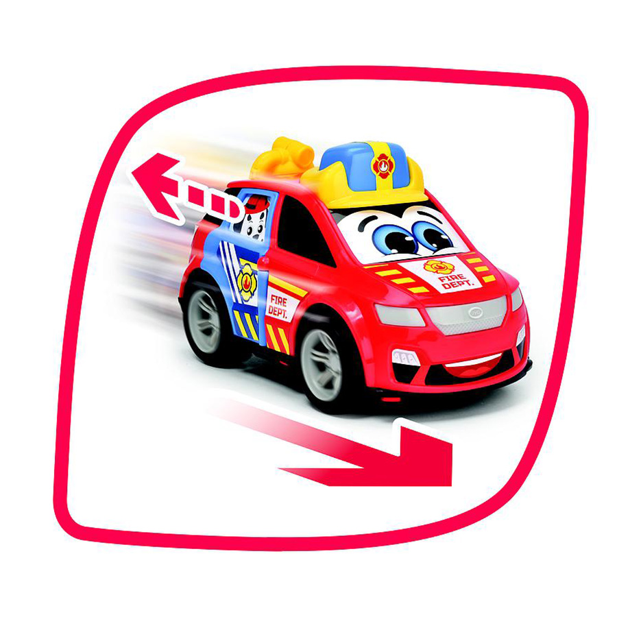 ABC City Car Fire dept rouge à friction, avec sirène et gyrophares. Dès 3 ans, il offre des jeux d’intervention stimulants, en toute sécurité et sans piles.