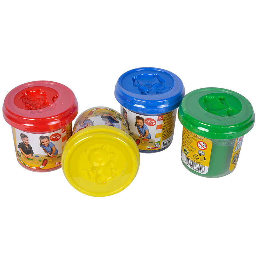 Art & Fun Pots à pâte molle de la marque SIMBA est un set de pots de pâte molle de 4 couleurs différentes de 140 g, rouge, bleu, jaune et vert, rétréci.