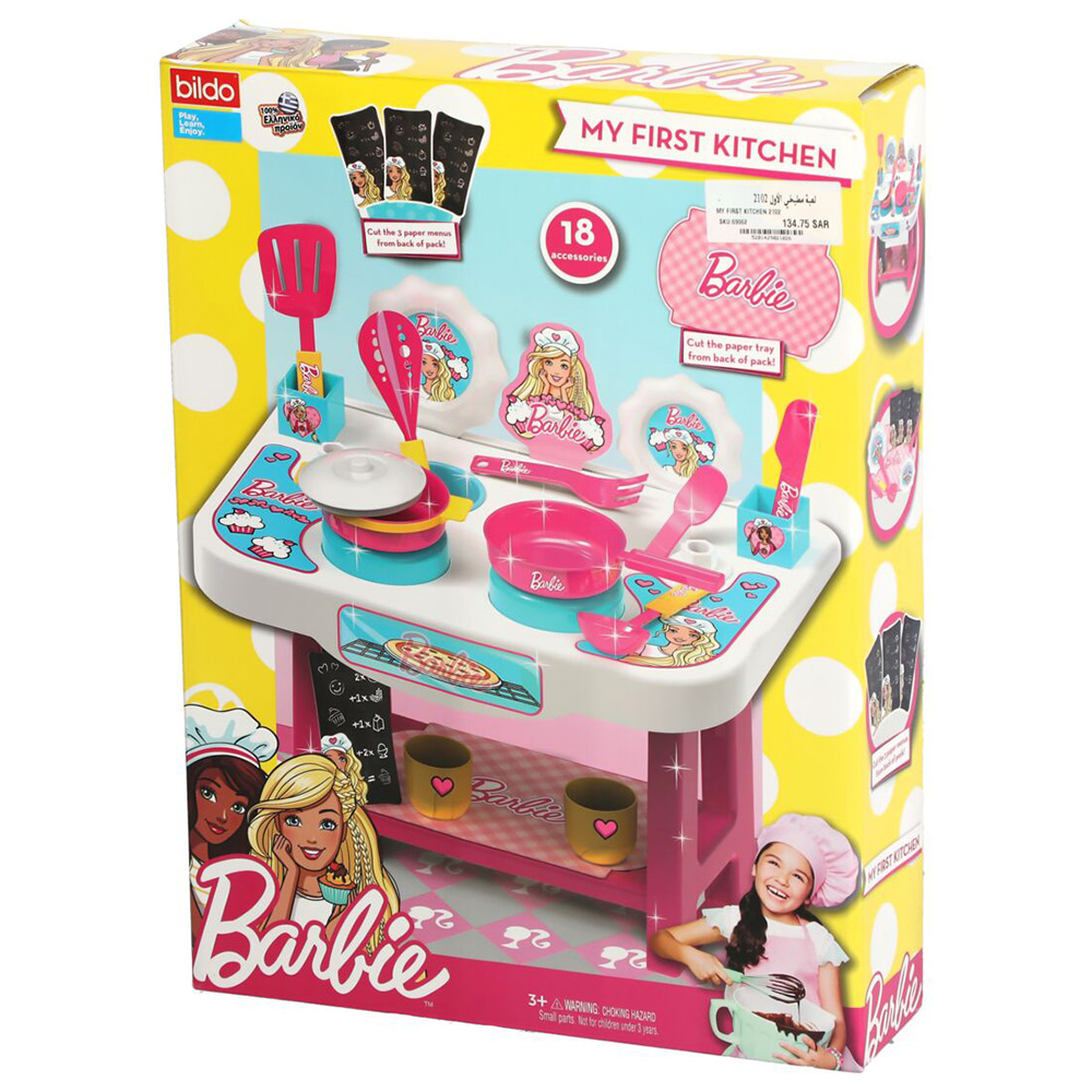 Barbie My First Kitchen est un ensemble de cuisine d’initiation conçu spécialement pour les tout-petits. Ce jouet comprend des éléments simples et colorés, adaptés aux petites mains, comme une cuisinière, des accessoires de cuisine et des aliments factices. Il permet aux enfants de découvrir l’univers de la cuisine en toute sécurité, tout en développant leur imagination et leur coordination.
