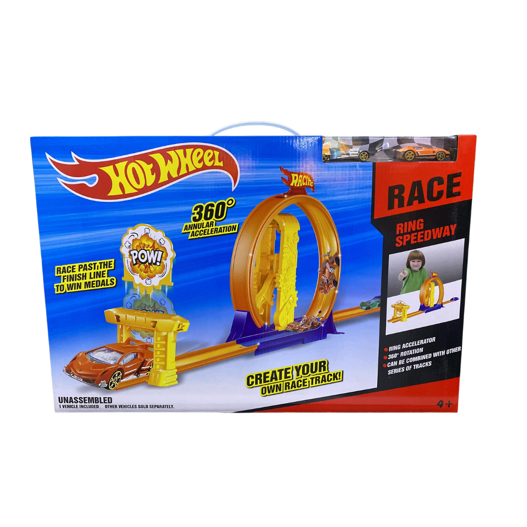 Offrez à votre enfant une expérience de course palpitante avec le Circuit Hot Wheels Ring 360 Rotation. Ce jeu dynamique comprend une piste circulaire avec un anneau rotatif à 360°, permettant aux voitures de réaliser des loopings spectaculaires. Équipé d’un lanceur manuel, il propulse les véhicules à grande vitesse, les faisant passer à travers le looping avant de continuer leur course.