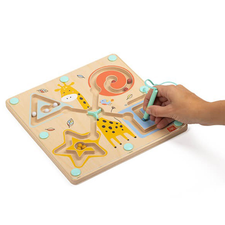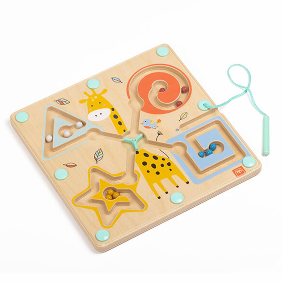 Ce circuit magnétique de boules multicolores est un jouet parfait pour les aider à développer leur motricité fine, une compétence qu’il est très important pour eux d’améliorer à ce stade. Le but du jeu est d’utiliser la baguette magnétique pour guider les boules à travers le circuit et de les placer dans la figure qui correspond à leur couleur. De cette façon, en plus de développer la motricité fine et la coordination œil-main, ils apprennent également à reconnaître différentes couleurs et sont initiés au concept de groupes et d’ensembles. S’ils le préfèrent, ils peuvent aussi se laisser emporter par la magie du magnétisme, découvrir le comportement des boules au contact de la baguette et découvrir le principe de cause à effet. Quelle que soit la façon dont vous jouez, vous êtes sûr de passer un bon moment avec ce circuit magnétique !