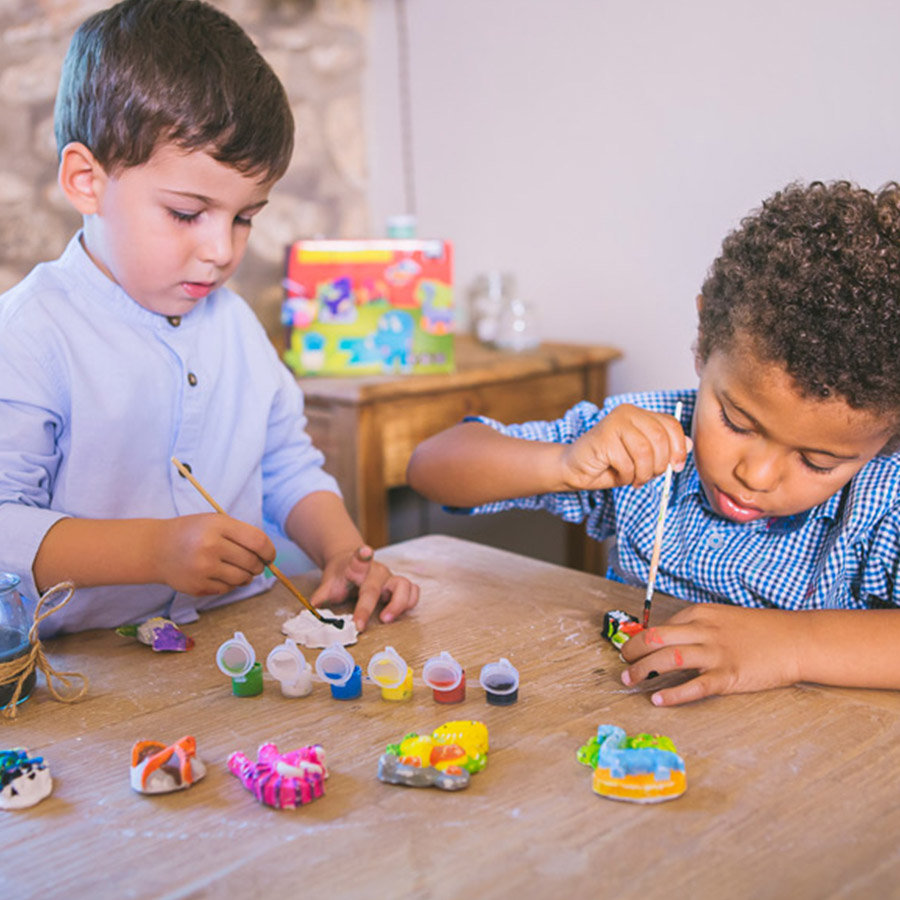 Moulez et peignez des aimants amusants en forme de dinosaures. Remplissez les moules, attendez qu’ils sèchent et peignez-les avec les couleurs que vous préférez. Il faut préparer les miniatures en mélangeant le plâtre avec de l’eau et en l’introduisant dans les moules. Le plâtre prend environ une heure pour sécher et être prêt pour la peinture.