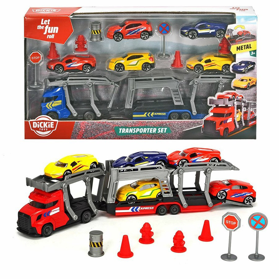 Le Dickie Toys City Transporter Set est un camion porte-voitures de 28 cm, livré avec 5 voitures moulées sous pression à roue libre. Ses pièces mobiles permettent de charger et décharger facilement les véhicules, offrant une expérience de jeu réaliste. Idéal pour les enfants dès 3 ans, il stimule la motricité fine et l’imagination.