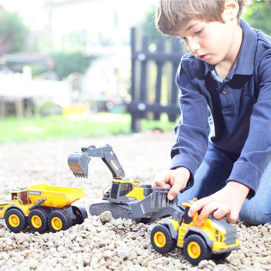 Cette pelleteuse Volvo sous licence officielle est équipée d’une pelle à chenilles de 23 cm, avec bras mobile pour manipuler terre et gravats. Elle offre des effets lumineux et sonores réalistes, activables par un simple bouton. Idéale pour les enfants dès 3 ans, elle stimule l’imagination et les jeux de rôle. Parfaite pour des heures de construction et d’aventure !