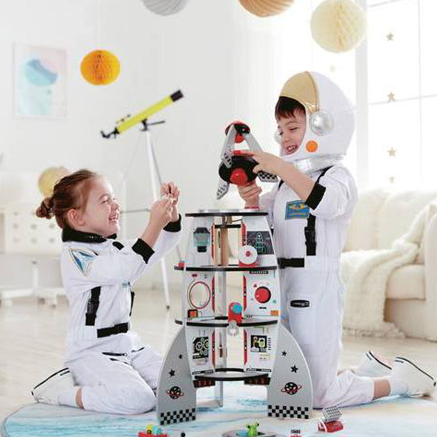 Envolez-vous vers d’autres mondes avec cette fusée à quatre étages avec atterrisseur interplanétaire ! Le compte à rebours commence, chauffe les moteurs, décolle ! Il est maintenant temps d’abandonner le navire, si vous l’osez. Faites votre propre voyage dans l’espace et inventez des histoires avec les astronautes et extraterrestres inclus. Un monde plein de mystères vous attend là-bas !