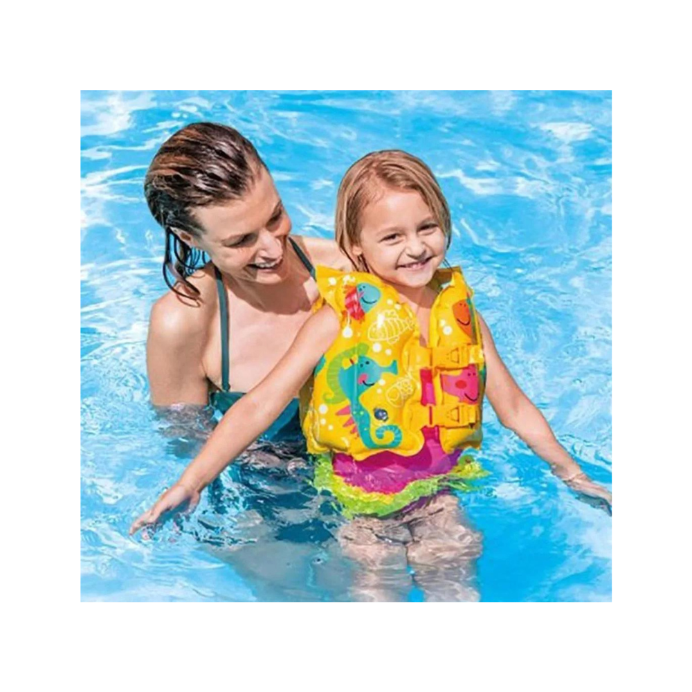 Gilet de natation gonflable 41 × 30 cm : motif enfant, boucles ajustables, 3 chambres à air. Léger, sûr et facile à enfiler — parfait dès 3 ans (18–30 kg) pour débuter la baignade sous surveillance adulte.