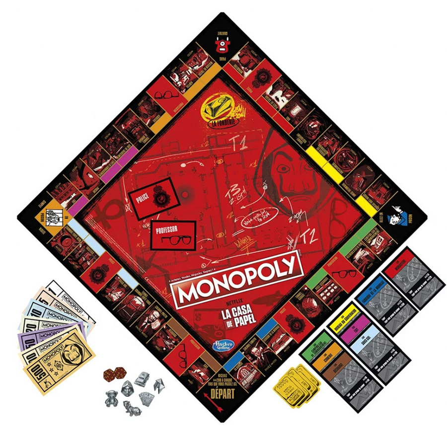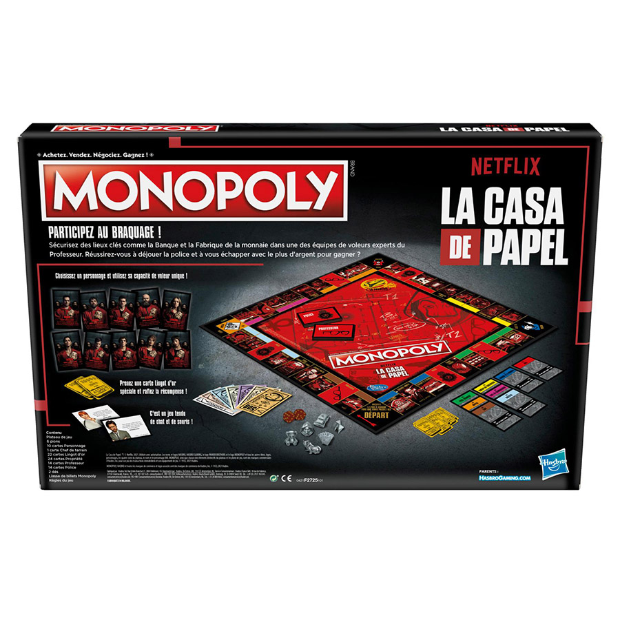 Monopoly La Casa de Papel : Incarnez un membre de l’équipe du Professeur et plongez dans l’univers palpitant de la série Netflix. Sécurisez des lieux emblématiques comme la Banque ou la Fabrique de la Monnaie, utilisez des capacités spéciales de voleur et collectez des cartes Lingot d’or pour maximiser vos gains. Un jeu stratégique où chaque décision compte. Pour 2 à 6 joueurs, dès 16 ans.