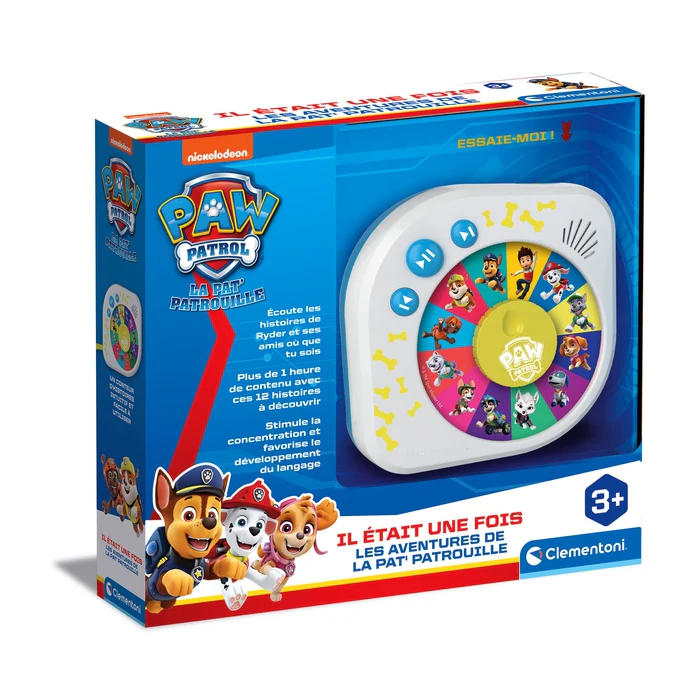 Il était une fois – Les aventures de la Paw Patrol de CLEMENTONI est un jeu éducatif interactif pour les enfants dès 4 ans. À travers des histoires captivantes avec les héros de la Paw Patrol, les enfants développent leurs compétences en narration et en vocabulaire. Un jeu amusant qui stimule l’imagination tout en apprenant à structurer des récits.