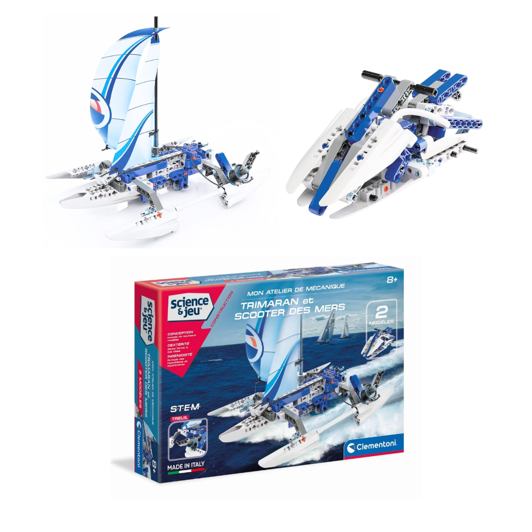 Construisez un trimaran et un scooter des mers fonctionnels ! Ce kit complet invite les enfants dès 8 ans à explorer l’ingénierie navale tout en s’amusant. Parfait pour éveiller la curiosité scientifique.