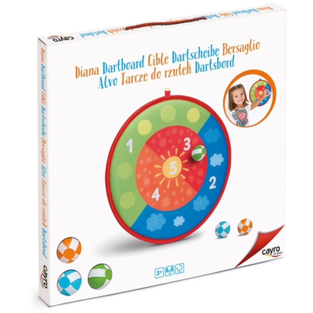 Le Diana Sol Cayro est un jeu de fléchettes pour enfants dès 3 ans. Il comprend une cible en tissu de 35 cm et trois mini-balles en velcro. Ce jeu favorise la coordination œil-main et la motricité fine, offrant des moments de divertissement en toute sécurité.