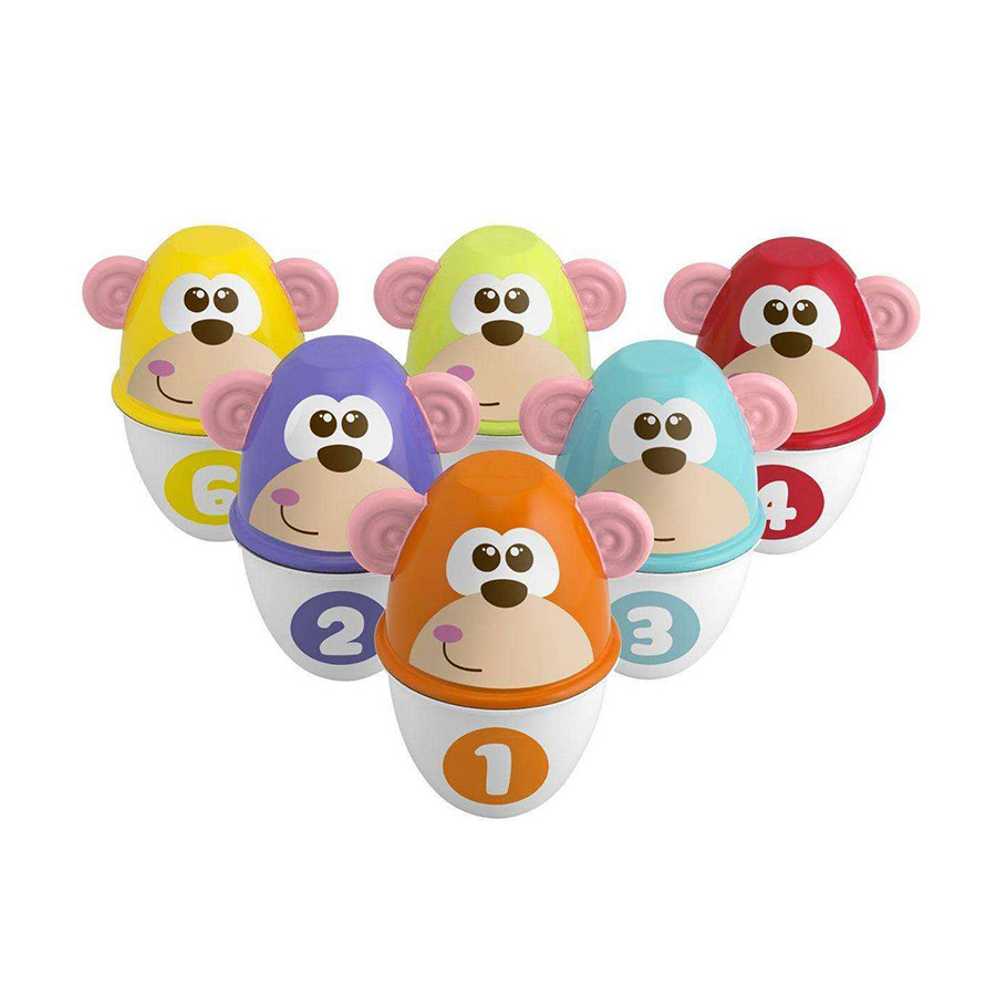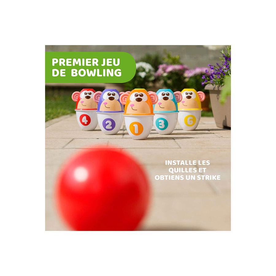 Le Jeu d’éveil – Bowling de la Jungle est parfait pour initier votre enfant à son tout premier jeu de bowling. Conçu pour les enfants de 18 mois à 5 ans, ce jeu ludique permet de développer la coordination œil-main tout en s’amusant à faire tomber les 6 quilles colorées en forme de singes.