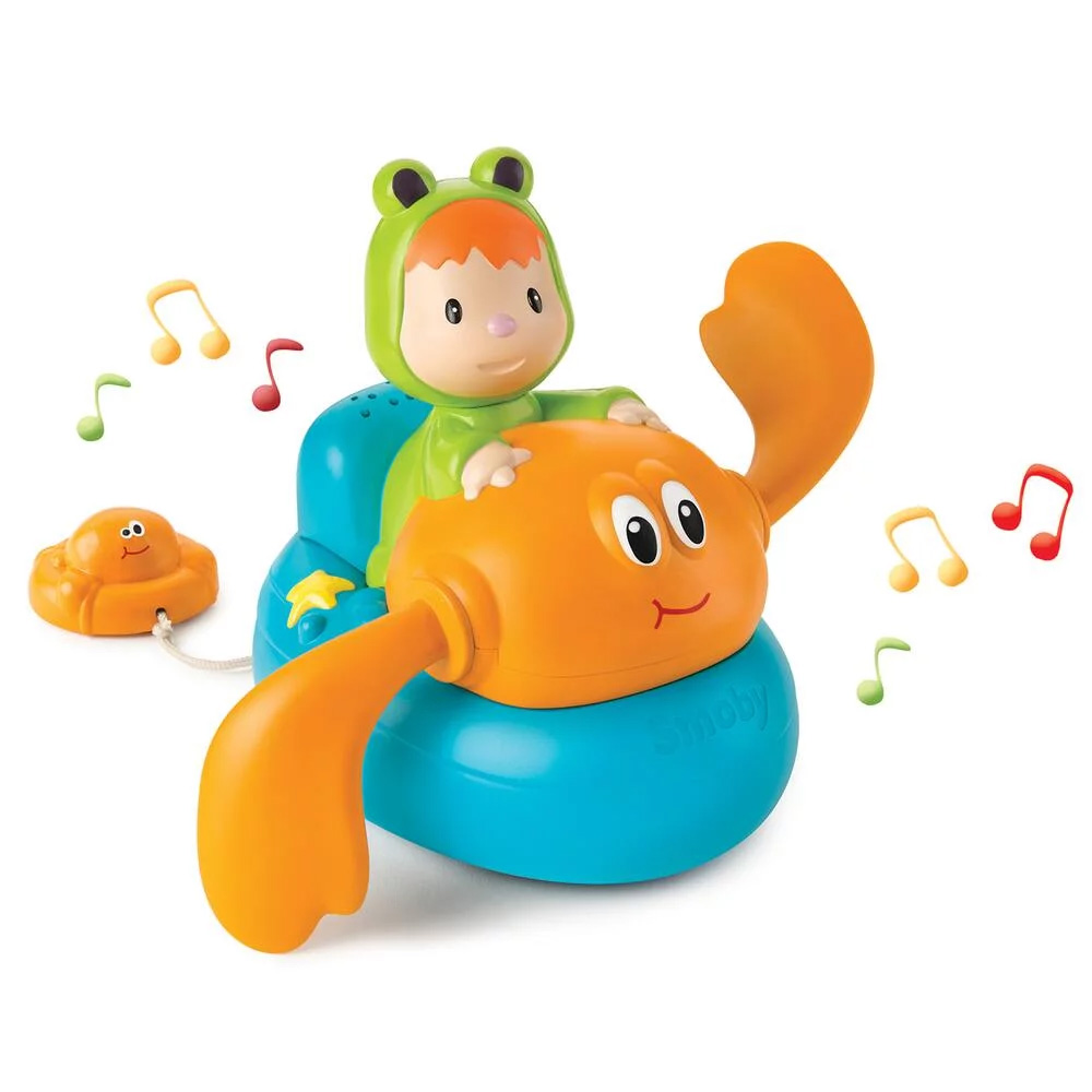 Jeu d’éveil – Cotoons Crabe musical : Jouet interactif pour bébé dès 12 mois : tirez la ficelle et le crabe avance en agitant ses pinces. Émet une douce mélodie au contact de l’eau. Stimule motricité fine, coordination et éveil auditif.