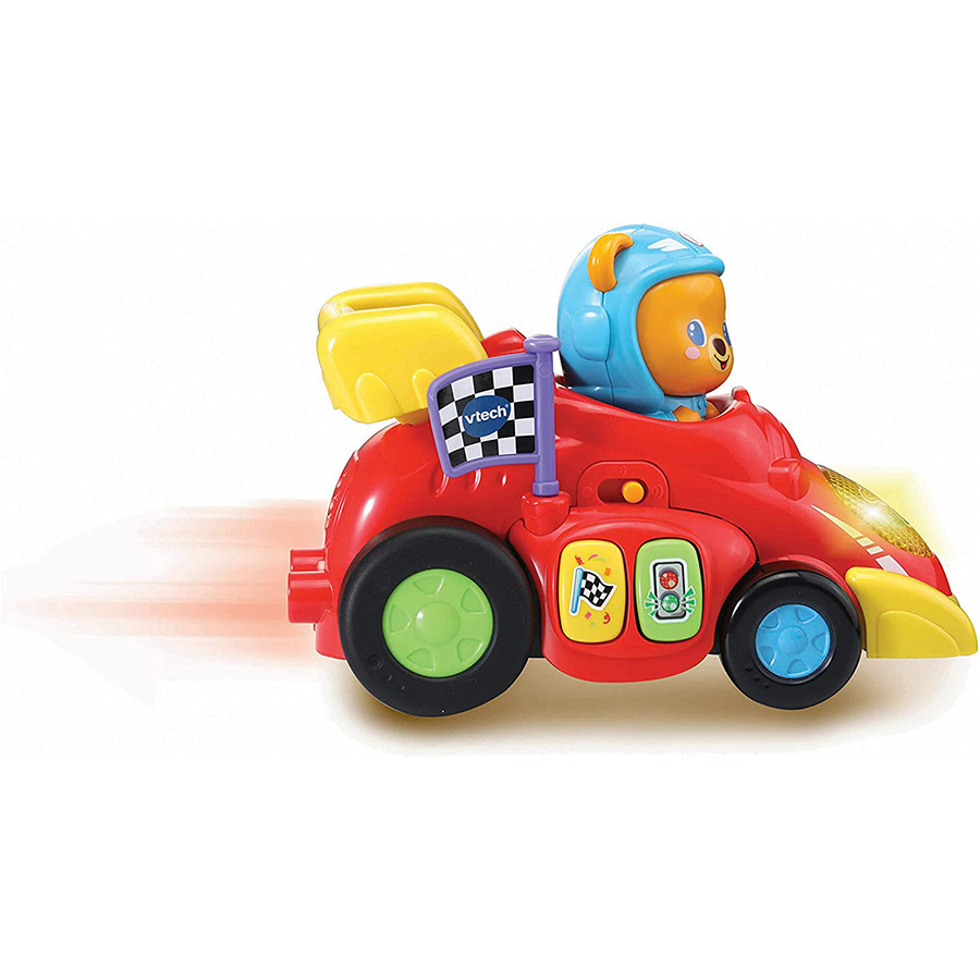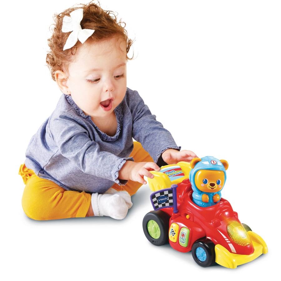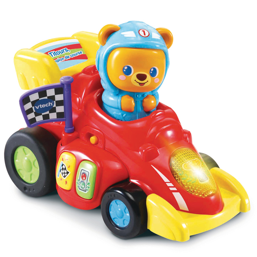Jeu d’éveil – Titours, champion de course : est un jouet interactif roulant qui initie bébé à la vitesse, aux couleurs et aux chiffres. En appuyant sur l’ourson ou grâce à la rétrofriction, l’enfant le fait avancer vers la victoire ! Avec sons, chansons et lumières, ce compagnon amusant stimule la motricité, la vue et l’imaginaire dès le plus jeune âge. Plus de 40 sons et mélodies pour apprendre en s’amusant !