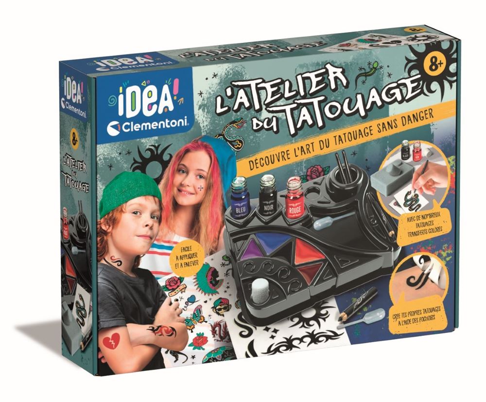 Laissez libre cours à la créativité de vos enfants avec L’atelier du tatouage de CLEMENTONI ! Ce kit permet de créer des tatouages temporaires personnalisés en toute sécurité. Parfait pour les enfants dès 8 ans, il inclut des motifs, des crayons, des paillettes et plus encore pour concevoir des dessins uniques sur la peau. Un jeu créatif et amusant qui stimule l’imagination !