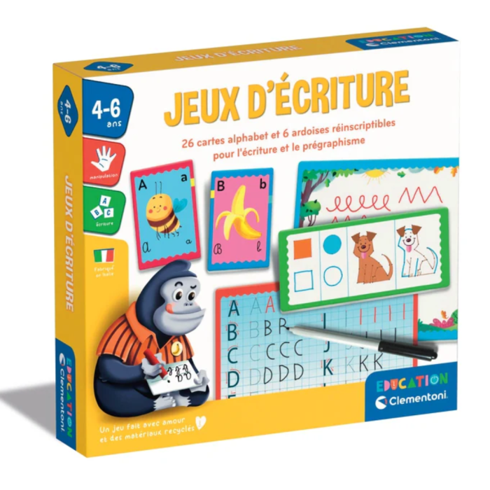 Le Jeux d’Écriture – Clementoni est un jeu éducatif parfait pour les enfants dès 4 ans. À l’aide d’un tableau effaçable, il permet de s’exercer à écrire les lettres, chiffres et mots de façon ludique et interactive, tout en développant la motricité fine.