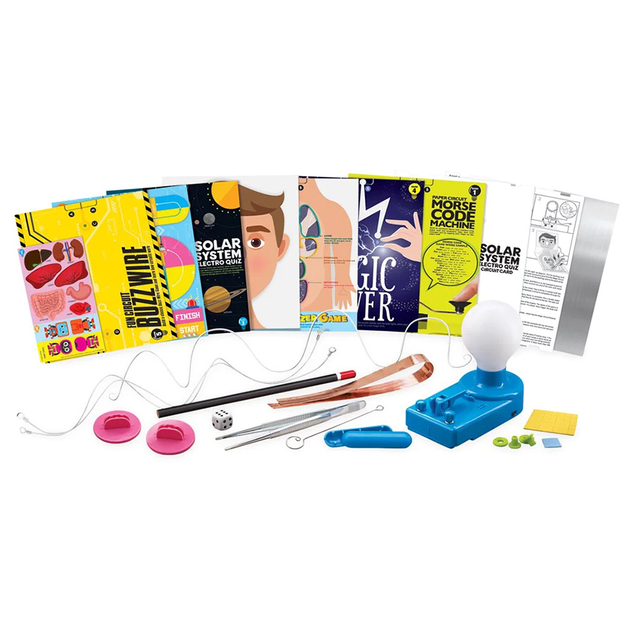 - Solar System Electro Quiz – Une incroyable machine à quiz électro qui fait un buzz et s’allume lorsque vous correspondez à une bonne réponse. Pas de câblage compliqué – les circuits sont connectés par des coups de crayon.