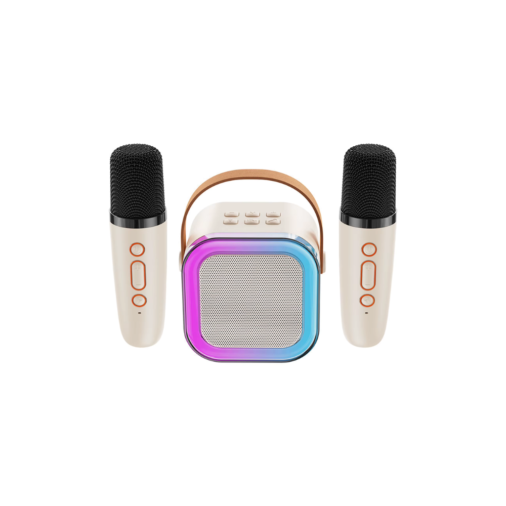 Lecteur de karaoké portable Bluetooth avec 2 microphone – Beige