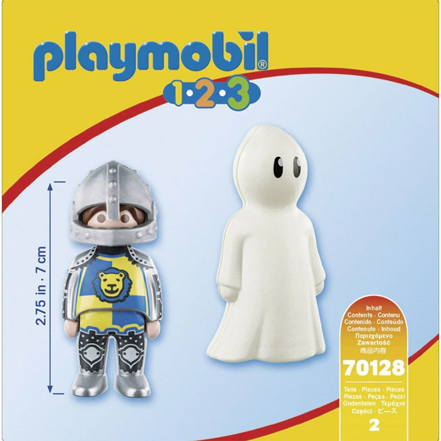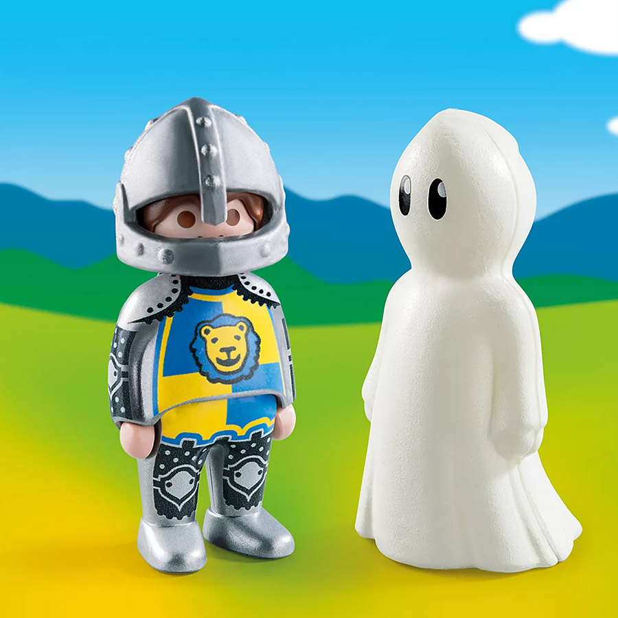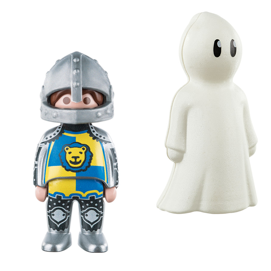 Avec Playmobil 123, le chevalier et fantôme, votre enfant invente de nouvelles histoires médiévales avec ses figurines Playmobil.