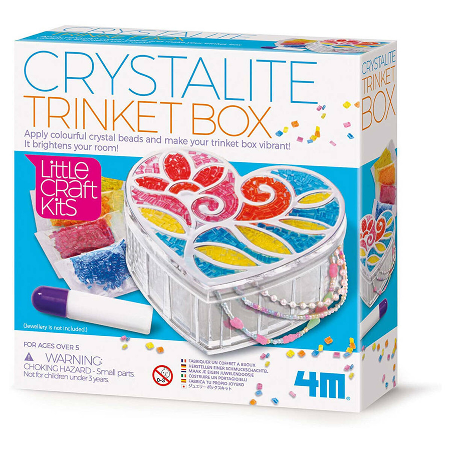 La boîte à bijoux Crystalite de Little Craft permet aux filles de décorer leur propre coffret à bijoux avec des strass brillants, des pierres colorées et des autocollants féeriques. Un atelier DIY (Do It Yourself) idéal pour allier créativité, minutie et amusement !