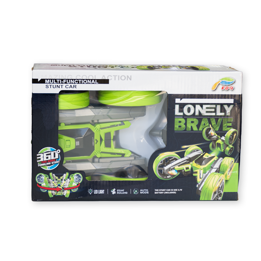 Voiture Lonely Brave RC 360°, conçue pour exécuter rotations, dérapages et figures acrobatiques. Solide, maniable et ludique pour des aventures spectaculaires dès 6 ans.