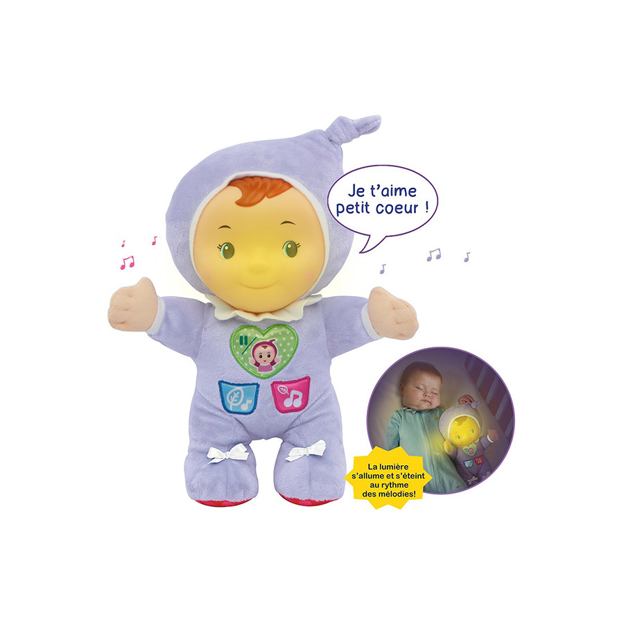 Avec son visage lumineux, Louison mon lumi poupon rassure votre bébé lors de son sommeil et la luminosité varie au rythme des mélodies, apaisant ainsi votre nourrisson.