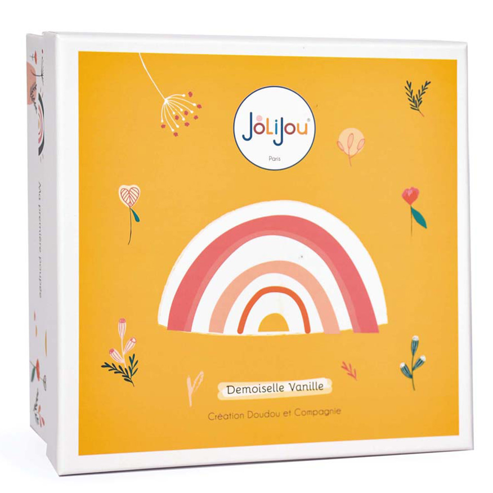 Mlle Vanille, vêtue d’une robe jaune, on peut s’amuser avec ses boucles brunes tortillées et son Doudou ourson ! Votre enfant a un Doudou ? Il reproduira ainsi ce qu’il aime partager avec son propre Doudou et pourra exprimer certaines émotions à travers sa poupée. Votre enfant n’a pas de Doudou, cela lui permettra justement de la voir comme un repère et de créer avec elle une complicité unique.