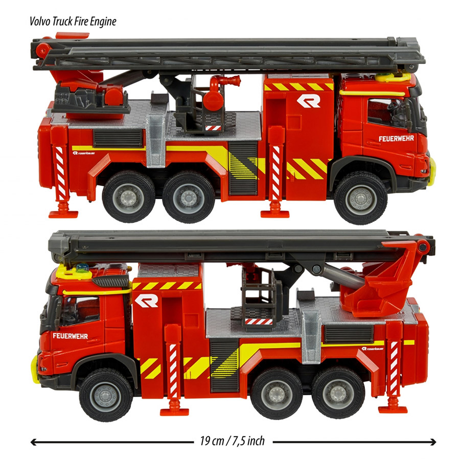 Le Majorette Volvo FMX Fire Ladder est un camion de pompiers miniature de 19 cm, conçu pour les enfants dès 3 ans. Ce modèle, sous licence officielle de Volvo et Rosenbauer, présente une cabine en métal robuste, une échelle télescopique rotative, des pneus en caoutchouc, des roues libres, ainsi que des effets lumineux et sonores réalistes.