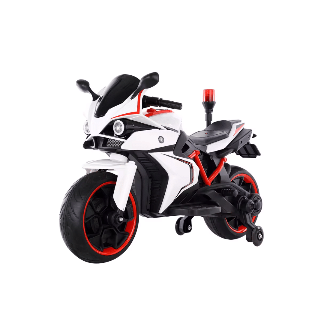 Cette moto électrique de police 3 roues blanc est pensée pour offrir aux enfants une conduite stable et sécurisée dès leurs premières aventures. Alimentée par une batterie, elle propose un moteur simple mais efficace pour des déplacements adaptés aux jeunes pilotes. Elle se distingue par ses effets lumineux (phares, gyrophare) et une structure à trois roues pour une stabilité renforcée, et un design inspiré du monde policier avec un top case arrière.
