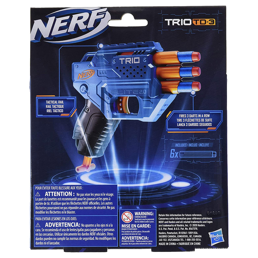 Menez des opérations foudroyantes avec le pistolet Nerf Elite 2.0 Trio TD 3 et ses 6 fléchettes officielles Nerf Elite.