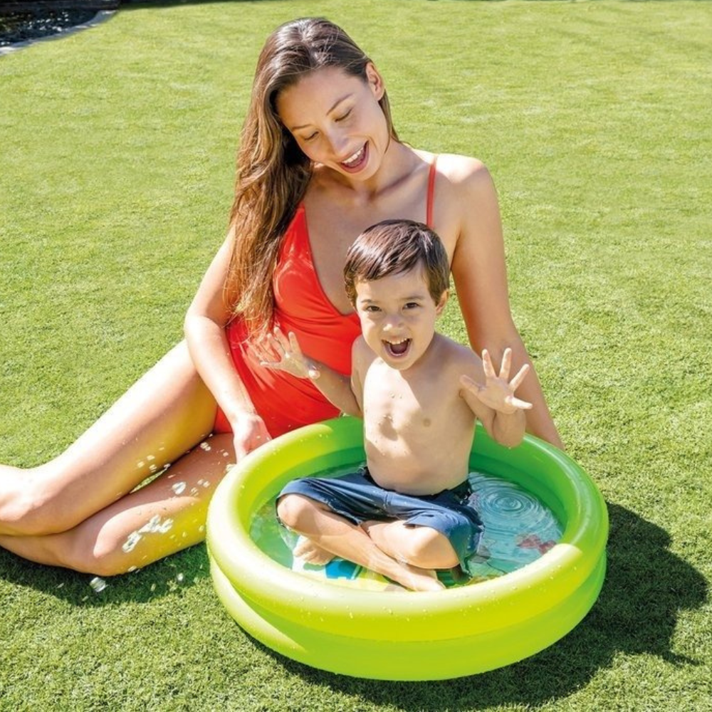 Piscine bébé gonflable simple : ronde, peu profonde, légère et rapide à mettre en place. Conçue dès 6 mois, elle offre un premier contact avec l’eau en toute sécurité et simplicité.