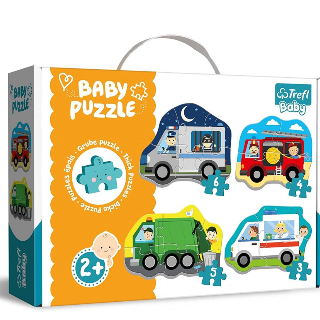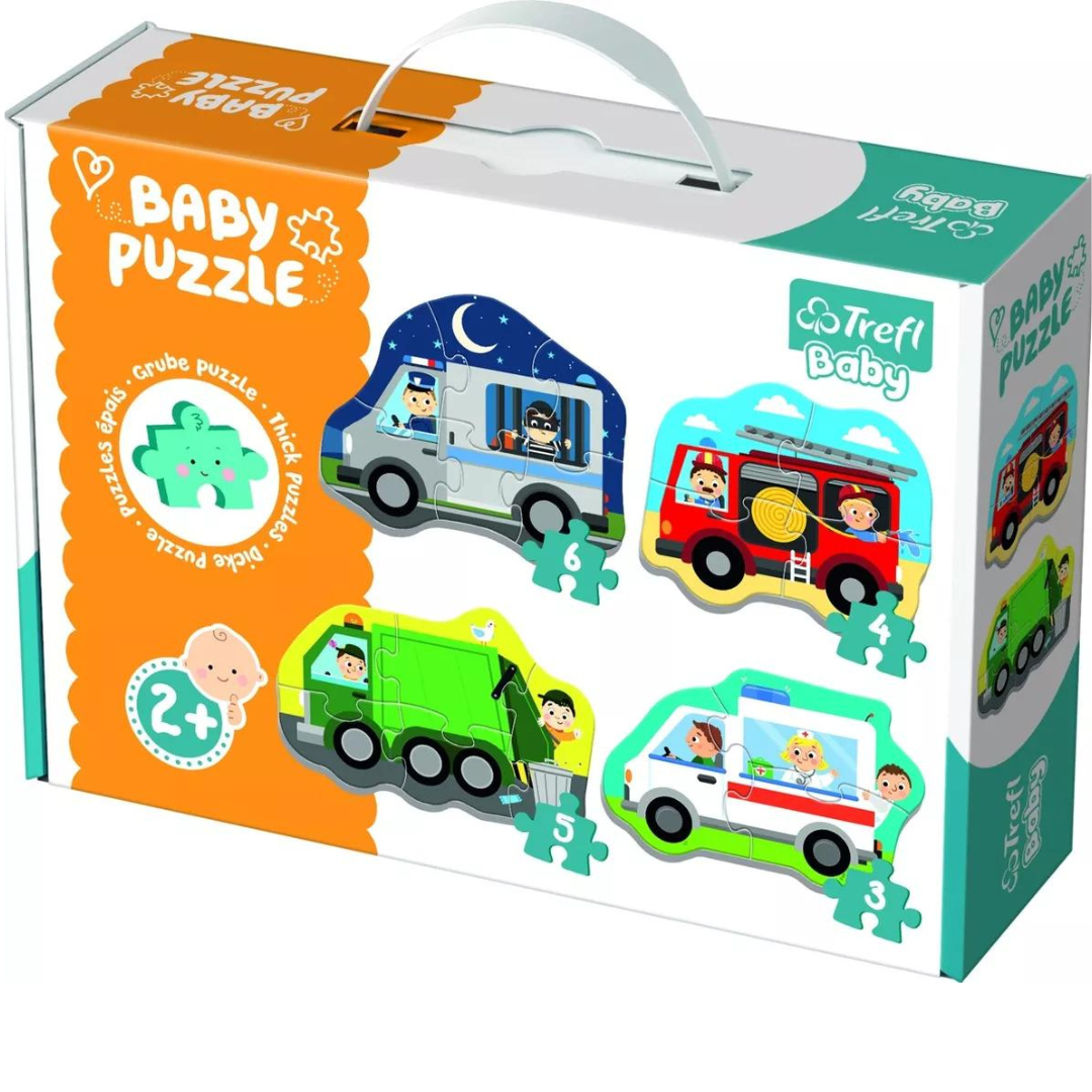 Initiez les tout-petits dès 2 ans au plaisir du puzzle avec ce coffret Baby Classic Véhicules : 4 puzzles progressifs aux grandes pièces colorées, parfait pour développer motricité, coordination et créativité.