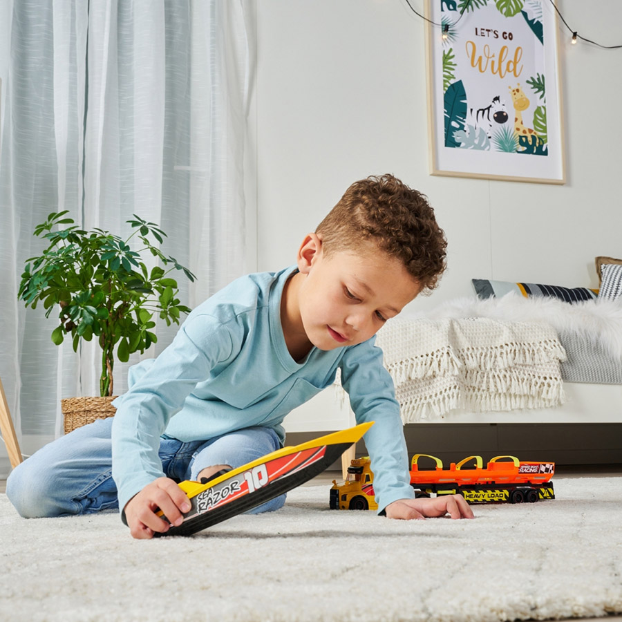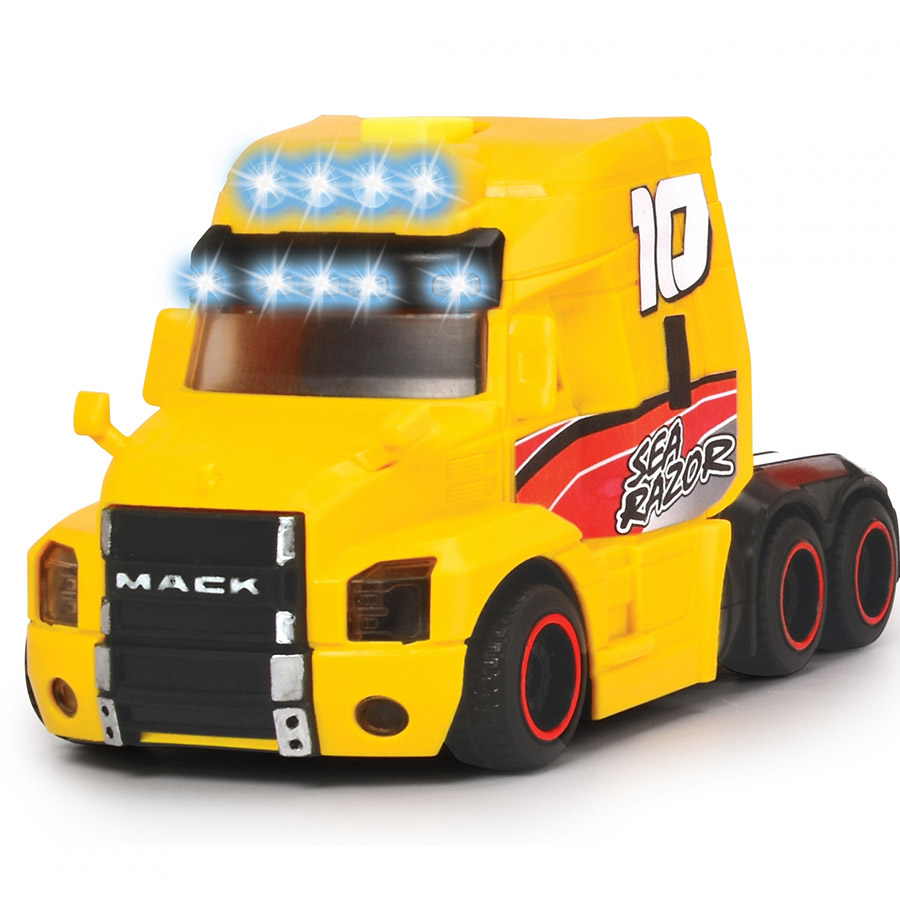 Le Sea Race Truck Son et Lumière est un camion de course inspiré des modèles Mack Trucks, équipé de phares clignotants et d’une sirène réaliste pour des interventions palpitantes. Il transporte un bateau rapide à moteur à remontée, parfait pour des aventures sur l’eau. Idéal pour les enfants dès 3 ans, il stimule l’imagination et offre des heures de jeu dynamiques.
