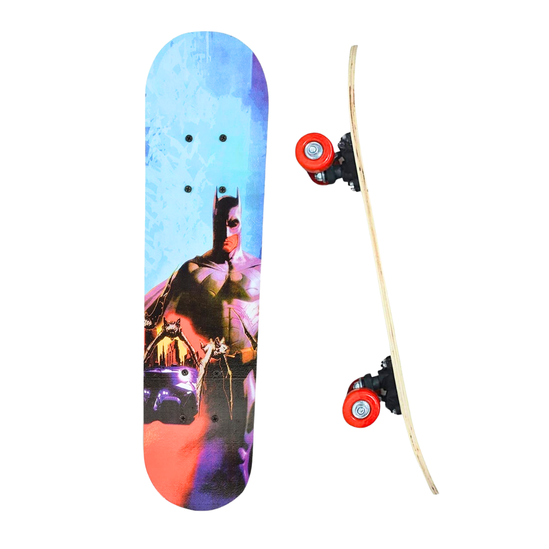 Offrez à vos enfants une expérience de glisse stylée avec le Skateboard Batman 60 cm. Décoré aux couleurs du célèbre super-héros, ce skateboard en bois est idéal pour les enfants dès 5 ans. Il favorise le développement de la coordination et de l’équilibre tout en s’amusant.