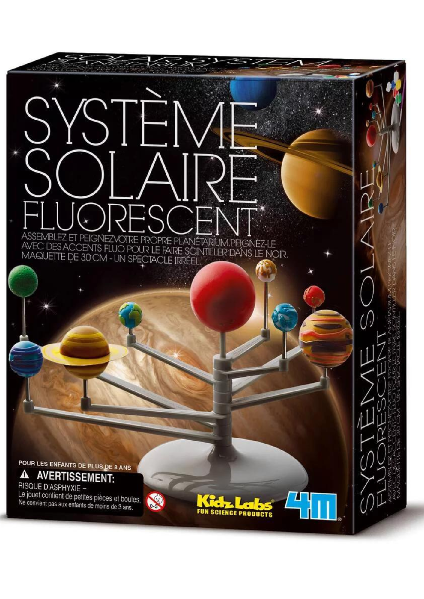 Kit Système Solaire Fluorescent 3D — assemblez et peignez votre propre système solaire phosphorescent de 30 cm. Ludique, éducatif et fascinant dès 8 ans, il transforme l’espace de l’enfant en cosmos étoilé.