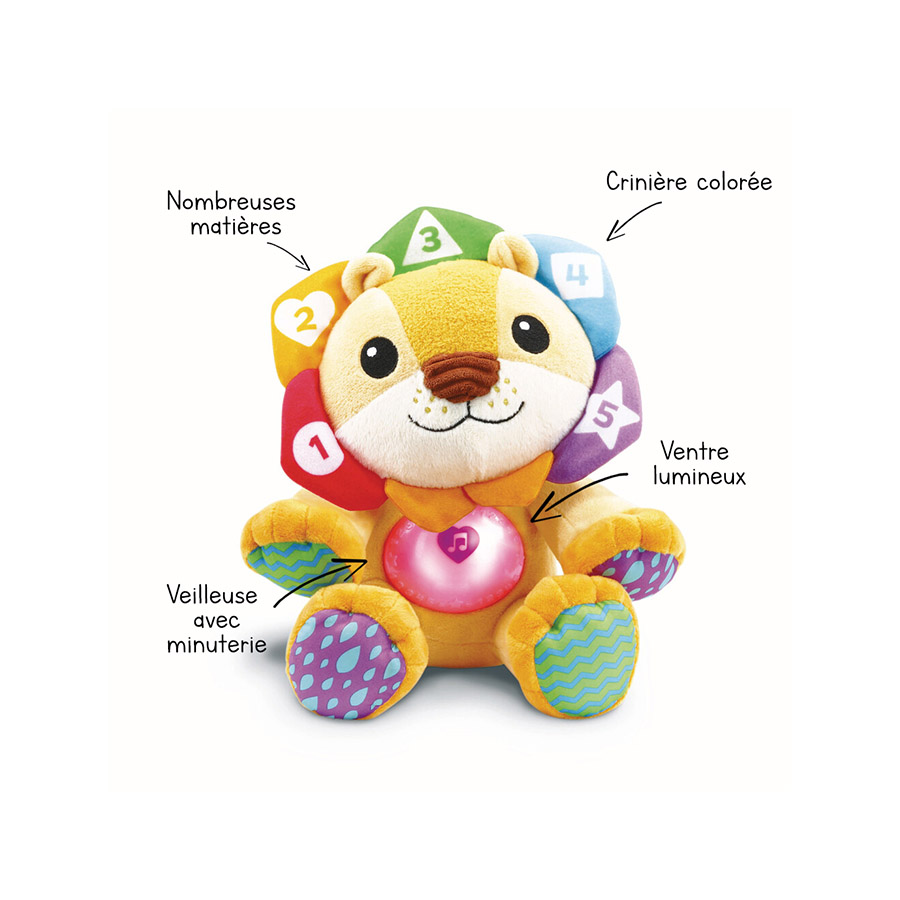 Grâce à cette peluche Interactive votre bébé apprend différentes notions telles que : les couleurs, les formes et les chiffres, grâce aux 3 chansons et 15 mélodies incluses. Les chansons sont faciles à apprendre et à chanter. Les illustrations colorées attireront l’attention de votre enfant.