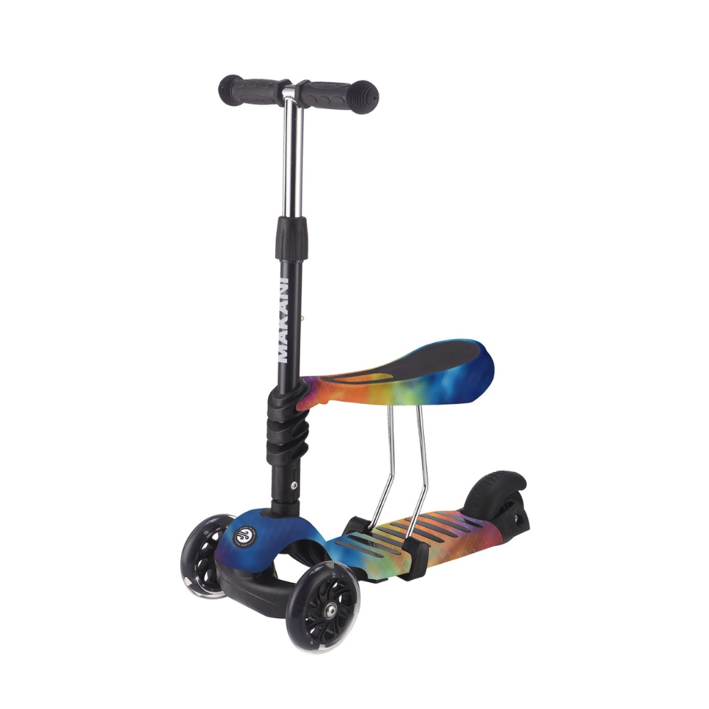 Avec son design arc-en-ciel éclatant, cette trottinette 3 roues est parfaite pour les premières balades. Elle est équipée d’un siège amovible pour alterner entre mode assis ou debout, selon l’envie ou l’âge de l’enfant.