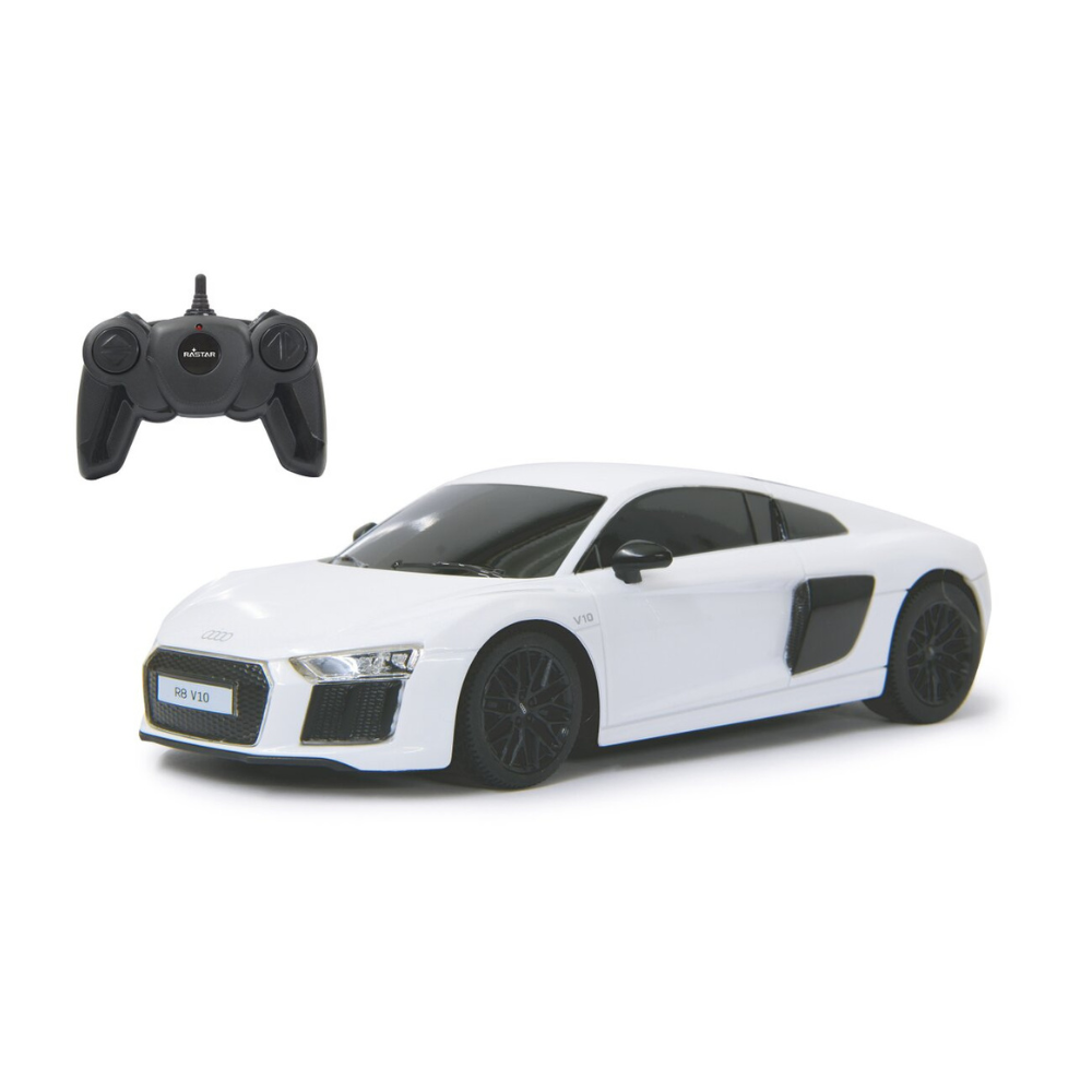Voiture RC Audi R8 Rastar 1:24 blanche, fidèle au style du modèle original, idéale pour les enfants à partir de 6 ans. Facile à piloter et résistante, elle offre des heures de jeu dynamiques, en intérieur comme en extérieur.